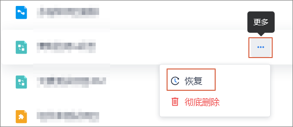 - 鼠标悬浮至项目名称,单击项目名称右侧更多,然后单击恢复。