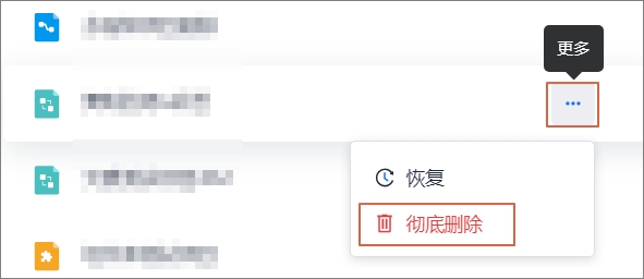 - 鼠标悬浮至项目名称,单击项目名称右侧更多,然后单击彻底删除。