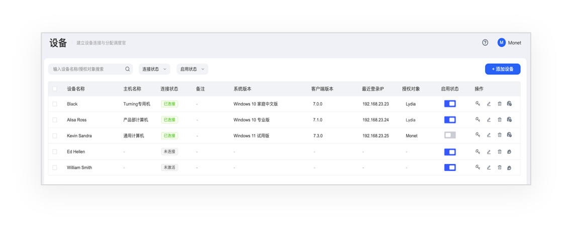 - 企业内自动化运行设备的统一管理及分配。