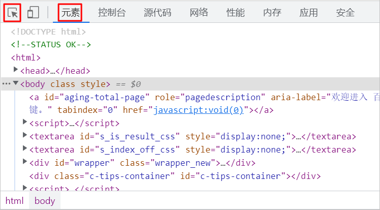 在百度首页打开开发者模式(Ctrl+Shift+I)。