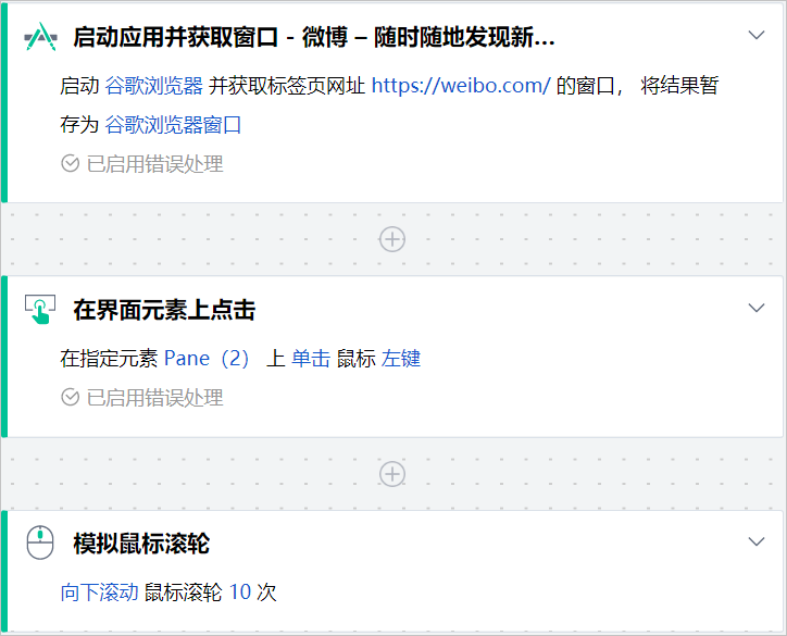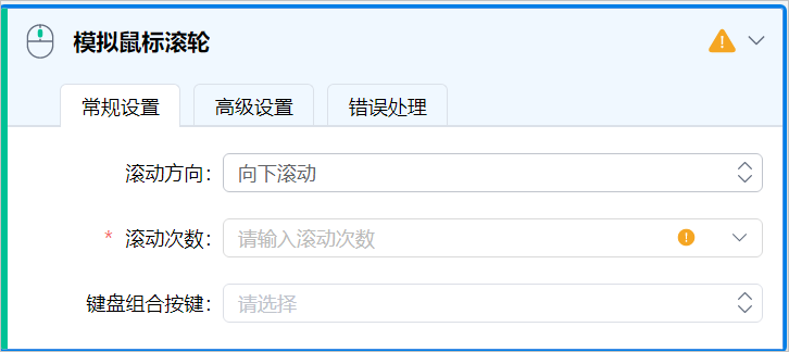 模拟鼠标滚轮组件模拟鼠标滚轮操作,如滚轮方向、次数,也可以和键盘组合使用。