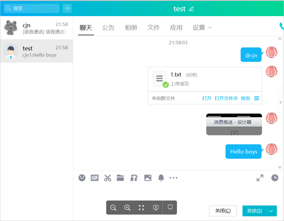 自定义组件QQ消息推送可以向指定的QQ群发送文本消息、图片、文件,并且可以@指定的群成员、向任意的指定成员(群内或非群内)拨打语音电话。