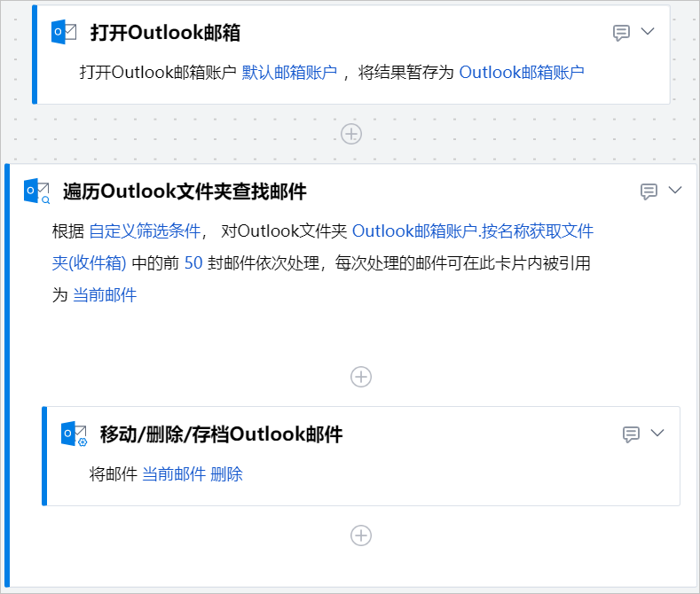 移动/删除/存档Outlook邮件组件可以将指定邮件移动至指定文件夹中,包含已删除、存档等文件夹。