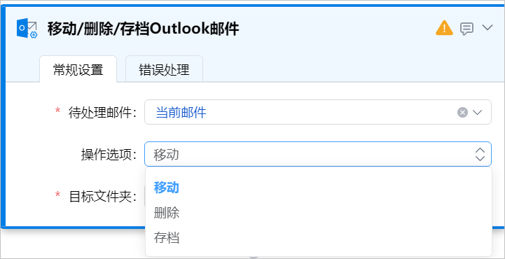 | 目标文件夹 | 要移动到的目标Outlook文件夹。仅操作选项为移动时需要设置。 |