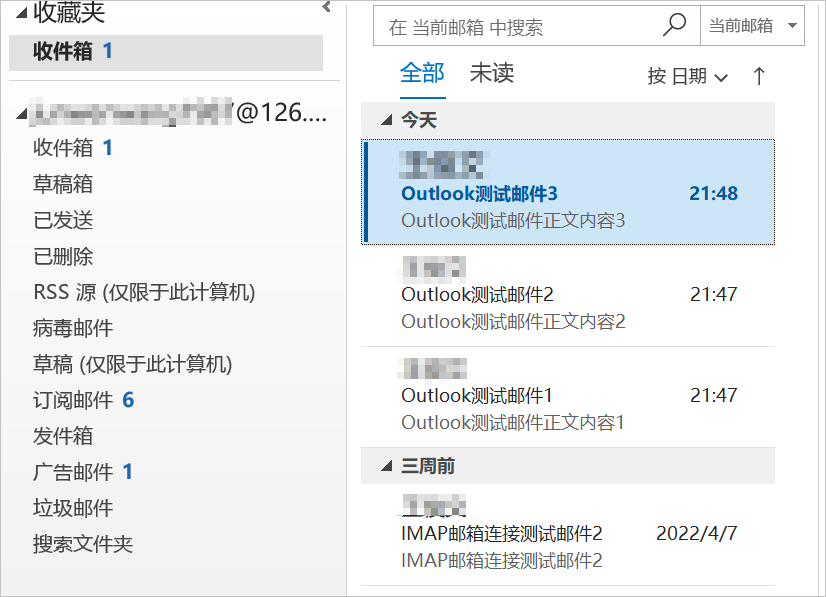 - 通过遍历Outlook文件夹查找邮件组件和移动/删除/存档Outlook邮件组件筛选并删除邮件主题包含Outlook测试的邮件。